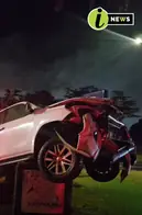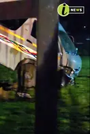 VEHICLE CRASHES THROUGH PALISADE FENCE AT T-JUNCTION