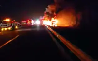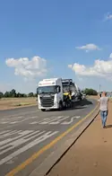 A truck has crashed and is currently in flames along the N11 route towards Hendrina. The road is completely blocked, and traffic is at a standstill.