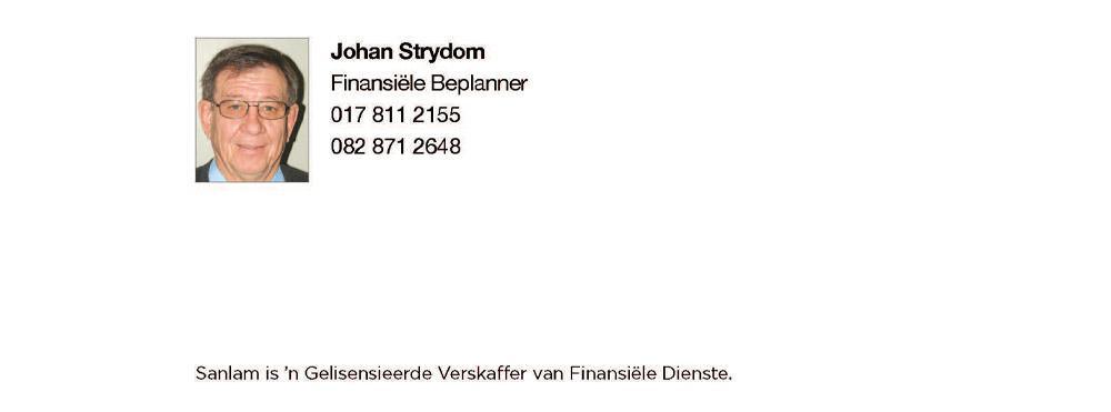 Sanlam Lewens is ‘n Gelisensieerde Lewensversekeraar, Verskaffer van Finansiële Dienste en Geregistreerde Kredietverskaffer (NCRCP43)