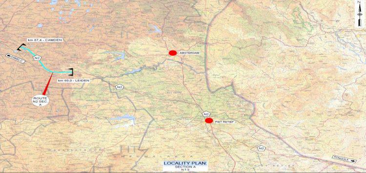 Motorists travelling along the N2 southbound between Leiden (km 59.0) and Camden (km 87.4) are advised to expect temporary road closures this afternoon due to scheduled blasting operations as part of ongoing road improvement works.