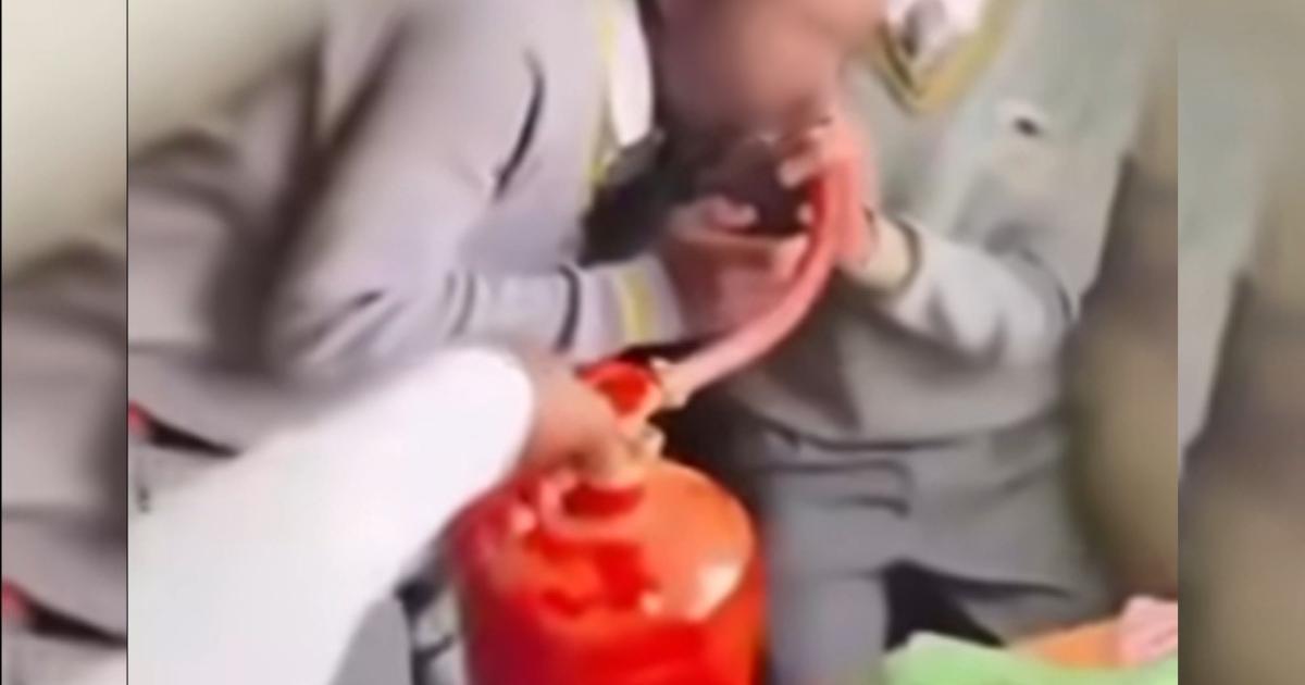 Image: Screenshot from a viral video showing learners inhaling powder from a fire extinguisher.