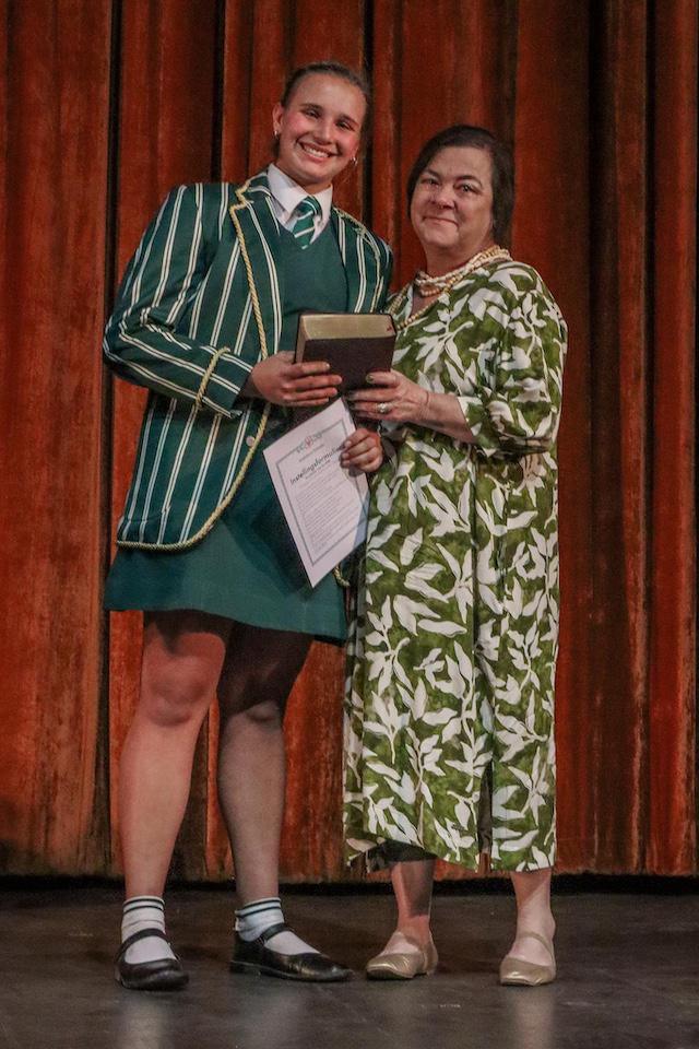 Na die oorhandiging van die baadjies is die Skoolbybel oorhandig aan die hoofdogter van 2025, Elizma Swart, as simbool van geloof met die wens: “Glo in God en glo in die toekoms. Neem dit as ‘n lig vir jou pad – ook vir die Erries.”