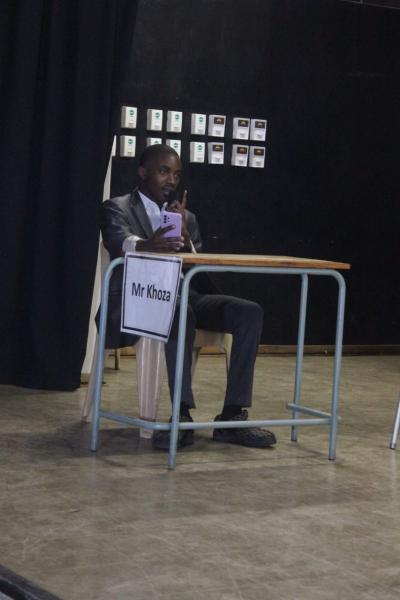 Photo: Head boy Siphamandla Masondo portraying Mr Khoza