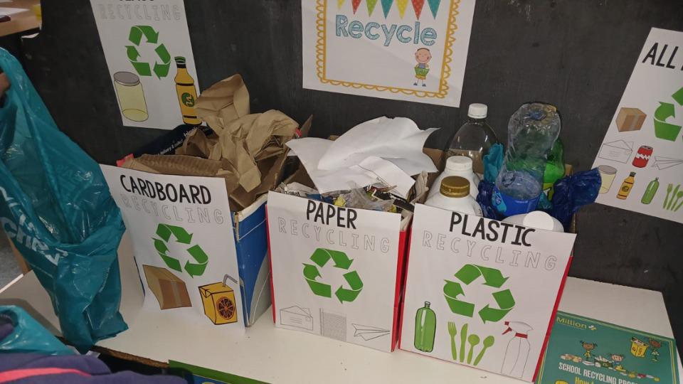 A clean-up song added a fun element to the activities. The students also set up dedicated recycling stations for cardboard, paper, and plastic, helping to reinforce the importance of proper waste separation.
