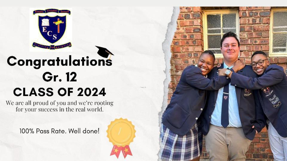 Ermelo Christian School is beaming with pride as the Grade 12 Class of 2024 celebrates a remarkable milestone – achieving a perfect 100% pass rate!