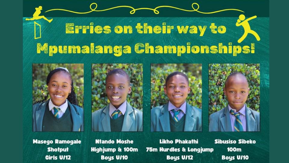 Four talented students from Laerskool Ermelo are gearing up to show their athletic prowess at the upcoming Mpumalanga Championships. Masego Ramogale, Ntando Moshe, Likho Phakathi, and Sibusiso Sibeko have earned their spots in various events, proudly representing their school.