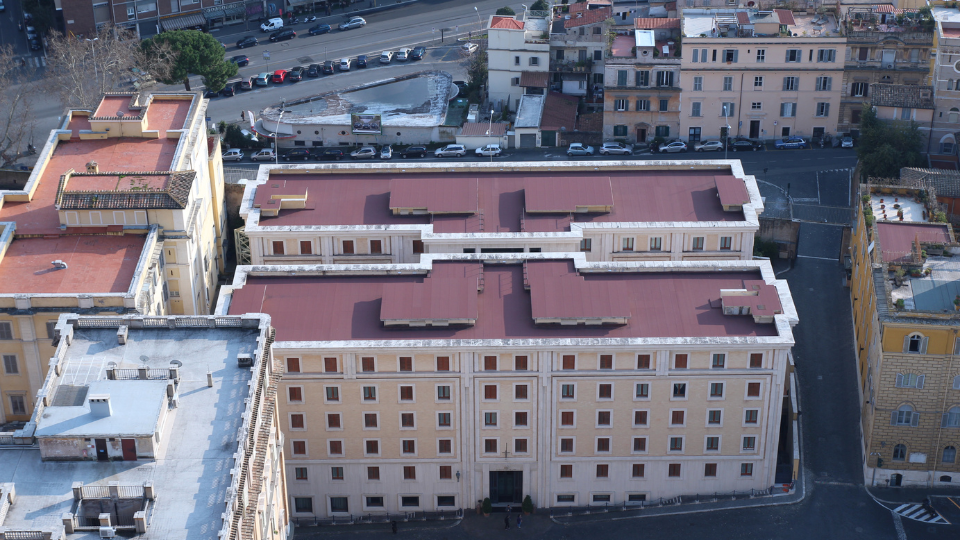 Image: The Domus Sanctae Marthae seen from the dome of St. Peter's Basilica https://commons.wikimedia.org/w/index.php?curid=24994943