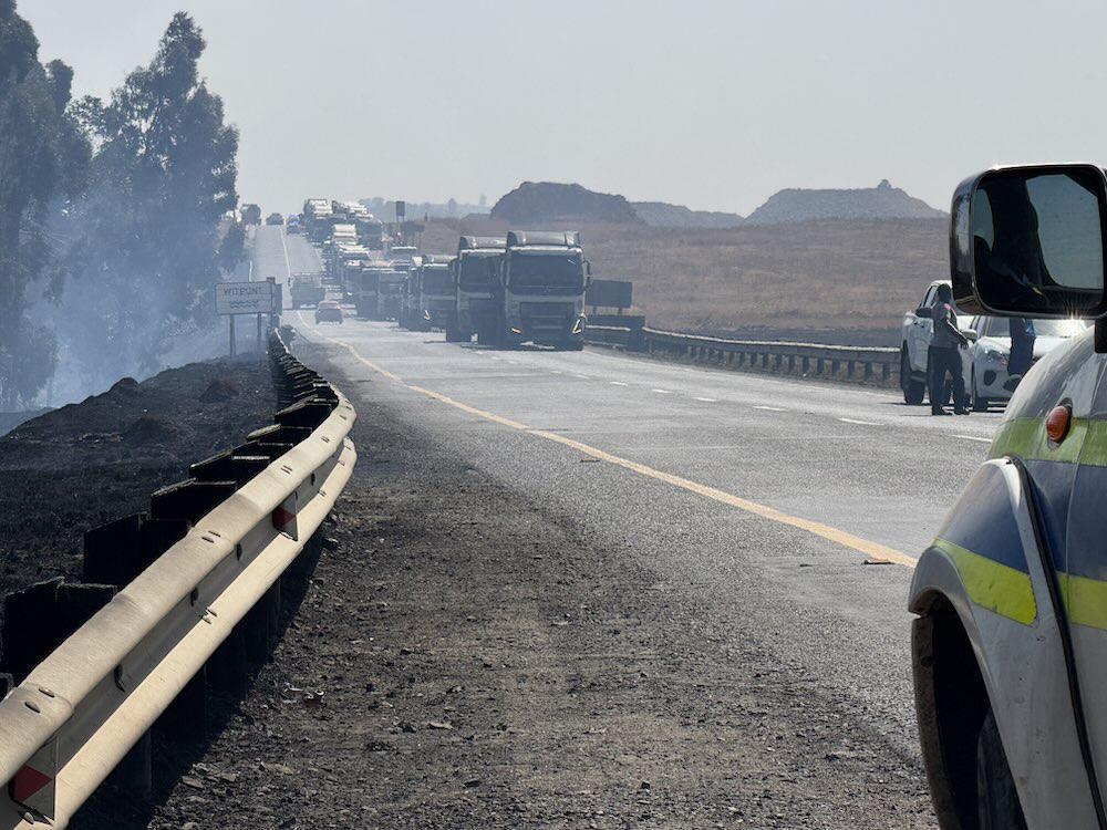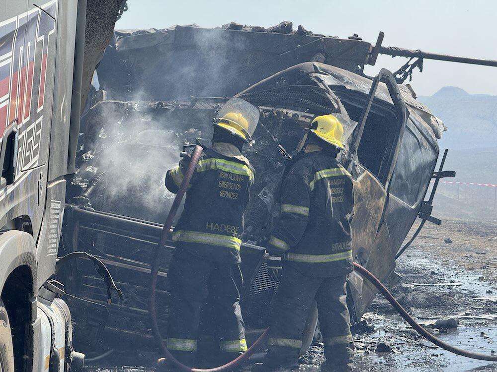 The sequence of events unfolded as thick smoke from the veld fire engulfed the N2, creating hazardous driving conditions. Four coal trucks and a bakkie were unable to stop in time, resulting in a pile-up. In the chaos, one of the coal trucks caught fire, tragically claiming the life of its driver. Another driver sustained minor injuries and was transported to a local hospital for treatment. Fortunately, no other injuries were reported.