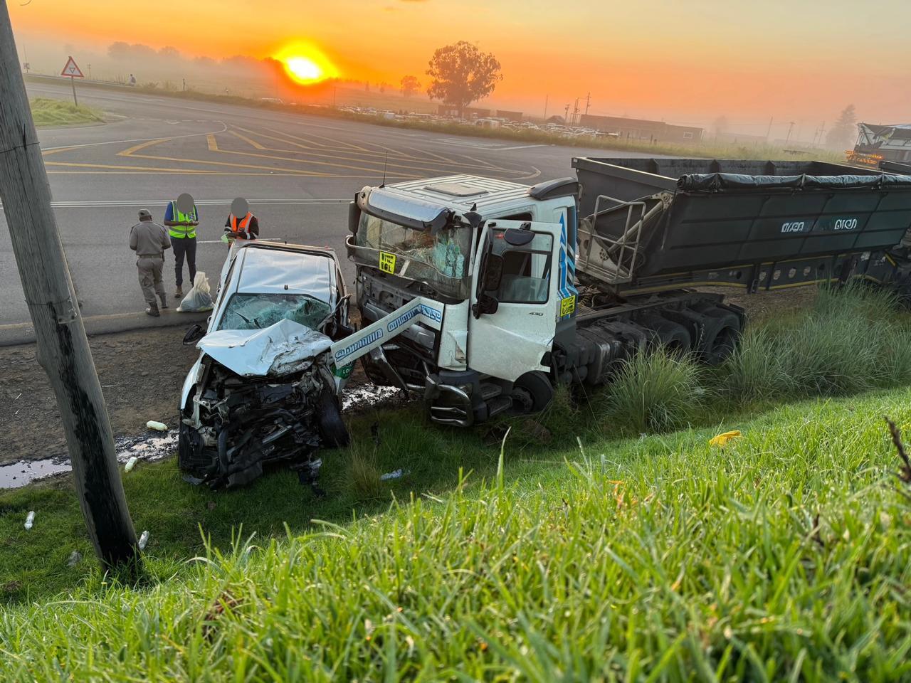 On Thursday morning before sunrise, a serious collision occurred approximately 7km outside Ermelo at the T-junction of the Chrissiesmeer (N17) and Breyten (R36) roads.