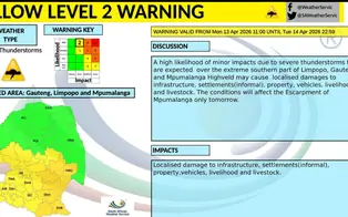 Severe Thunderstorm Warning Issued for Large Parts of Mpumalanga