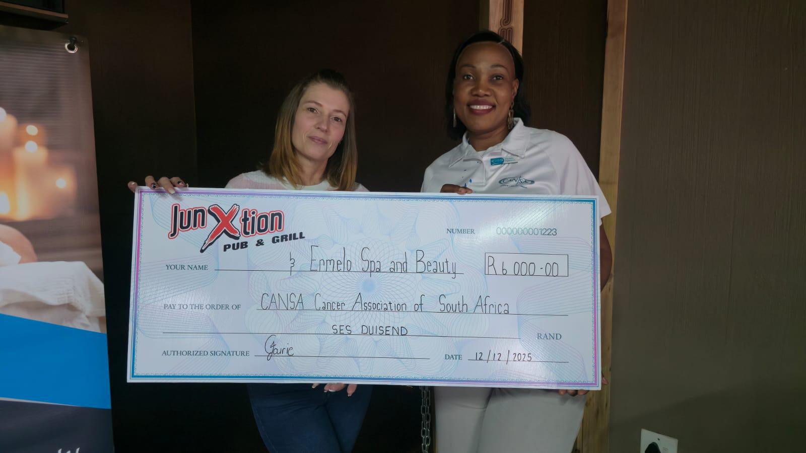 Junxtion Pub & Grill, together with Ermelo Spa & Beauty, raised a combined total of R6 000 during the month of November in support of the Cancer Association of South Africa (CANSA). The funds were generated through joint community-driven initiatives, underlining the businesses’ commitment to supporting causes that positively impact the local community.