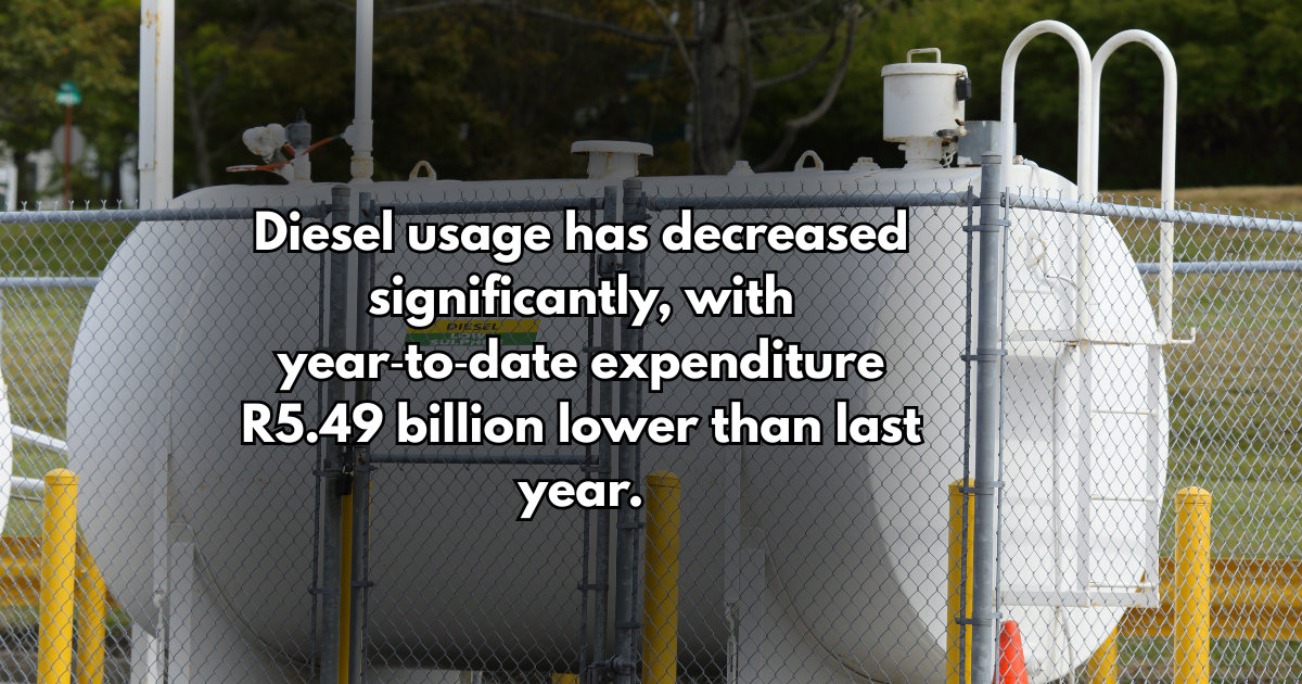 Diesel usage has decreased significantly, with year‑to‑date expenditure R5.49 billion lower than last year. Energy generated from Open Cycle Gas Turbines fell by 45.77% year‑on‑year, reflecting reduced reliance on diesel. Eskom noted that some recent diesel usage relates to existing take‑or‑pay agreements with Independent Power Producers.